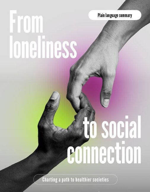 This plain language summary of the WHO Commission on Social Connection's flagship report aims to be a clear, concise and jargon-free version of the full report, written for a broader audience. This landmark report from the WHO Commission on Social Connection highlights that social isolation and loneliness are widespread, with serious but under-recognized impacts on health, well-being, and society. Drawing on the latest evidence, the report makes a compelling case for urgent action. It outlines practical, scalable solutions to strengthen social connection – and calls on policy-makers, researchers and all sectors to treat social health with the same urgency as physical and mental health. The Commissioners envision a future where stronger social bonds improve well-being, reduce preventable deaths, boost education and economic resilience, and ease the social and financial burden of disconnection. This report is a call to act – and an invitation to build a more connected, healthier world. |