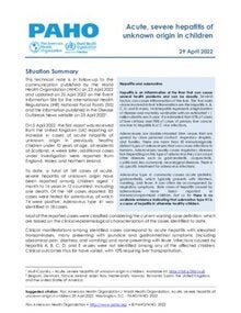 Technical Note: Acute, severe hepatitis of unknown origin in children. 29 April 2022.