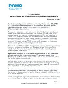 Technical Note: Malaria vaccine and priorities for malaria elimination in the Americas