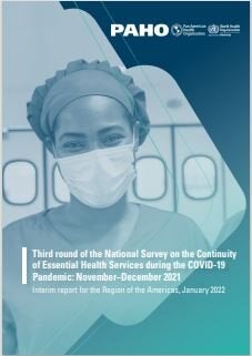 The COVID-19 pandemic continues to expose the limitations of health systems across the Region of the Americas, and globally. COVID-19 vaccination programs have been rolled out in most countries, but concerns remain in terms of production, delivery, and equitable access. At the same time, new outbreaks and variants continue to emerge. Health systems are therefore still facing a dual burden as they strive to ensure the continuity of essential health services while combating the COVID-19 pandemic. Changes in care provision to meet increased demand for COVID-19 care have challenged local and national capacities to maintain access to essential health services across all priority areas in most countries of the Region. In this context, the World Health Organization (WHO) developed the global pulse survey on continuity of essential health services during the COVID-19 pandemic to help monitor and manage the extent of the disruptions to essential health services caused by the COVID-19 pandemic. The Pan American Health Organization (PAHO) has been supporting the implementation of the survey in the countries of the Region. The three rounds of the survey provide an opportunity to assess how the pandemic’s impact has evolved over time regarding disruptions and rebounds in services and responses, mitigation strategies, and bottlenecks to the implementation of COVID-19 essential tools. During November–December 2021 the third round of the survey was launched, in which 223 countries, territories, and areas were invited to respond to a standardized web-based survey. This report presents the results of the third round of the survey for the countries in the Region of the Americas. It also includes an assessment of trends over time in the continuation of essential health services, where feasible. To ensure coherence and harmonization, this report adopts the structure and content of the WHO global report on the results of the third round of the survey.