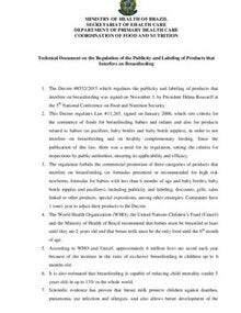 Technical Document on the Regulation of the Publicity and Labeling of Products that Interfere on Breastfeeding