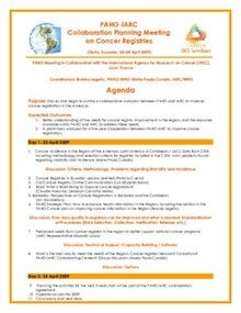 Agenda, PAHO/IARC Meeting on Cancer Registries (Quito, April 2009)