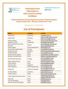 List of Participants: Improving Cancer Information in Latin America and the Caribbean, Brasilia 2009