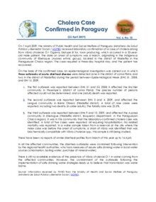 22 April 2009: Cholera – case in Paraguay