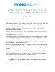 Weekly Press Briefing on COVID-19: Director's Opening Remarks, November 25, 2020