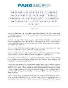 Director’s remarks at Bloomberg Philanthropies' Webinar “Leading Through Crisis: Reducing the Impact of COVID-19 in Latin America and Africa”