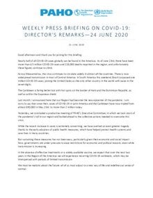 Weekly Press Briefing on COVID-19: Director's Opening Remarks, June 24, 2020