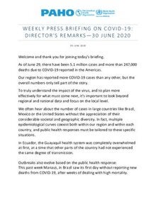 Weekly Press Briefing on COVID-19: Director's Opening Remarks, June 30, 2020