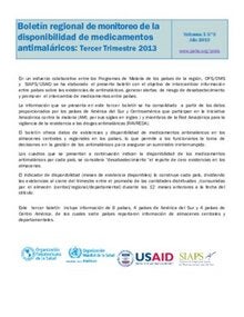 Regional bulletin for the availability of antimalarial medicines: Second Quarter 2013. Volume 1 Number 3, 2013