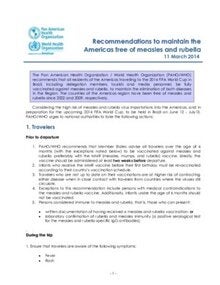 Recommendations to maintain the Americas free of measles and rubella - 11 March 2014