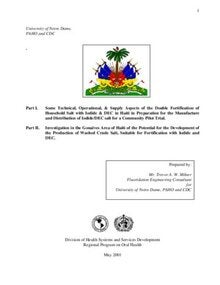 Some Technical, Operational & Supply Aspects of the Double Fortification of Household Salt