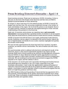 Weekly Press Briefing on COVID-19: Director’s Opening Remarks, April 14, 2020