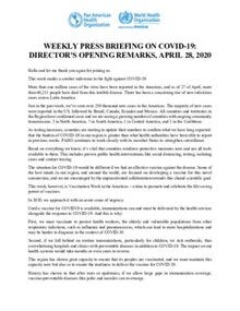 Weekly Press Briefing on COVID-19: Director’s Opening Remarks, April 28, 2020