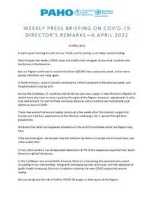 Weekly Press Briefing on COVID-19: Director's Opening Remarks, April 6, 2022