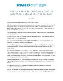 COVID infections continue to surge throughout the Americas. Last week, we had more than 1.3 million new cases in our region and more than 37,000 deaths. In fact, more than half of all global deaths reported over the last week were found in the Americas – a sober reminder of the human toll of this pandemic.