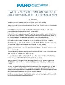 Weekly Press Briefing on COVID-19: Director's Opening Remarks, December 1, 2021