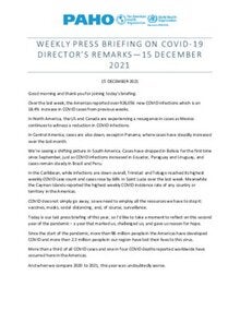 Weekly Press Briefing on COVID-19: Director's Opening Remarks, December 15, 2021