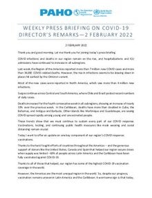 Weekly Press Briefing on COVID-19: Director's Opening Remarks, February 2, 2022