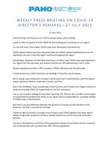 Weekly Press Briefing on COVID-19: Director's Opening Remarks, July 27, 2022