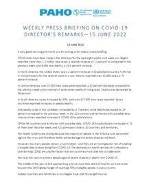 Weekly Press Briefing on COVID-19: Director's Opening Remarks, June 15, 2022