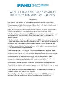 Weekly Press Briefing on COVID-19: Director's Opening Remarks, June 29, 2022