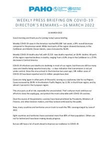 Weekly Press Briefing on COVID-19: Director's Opening Remarks, March 16, 2022
