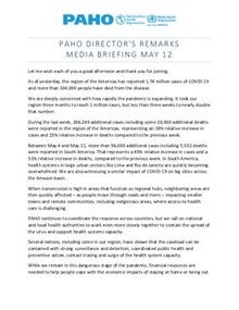 As of yesterday, the region of the Americas has reported 1,74 million cases of COVID-19 and more than 104,000 people have died from the disease.