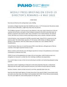 Weekly Press Briefing on COVID-19: Director's Opening Remarks, May 4, 2022