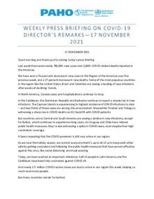 Weekly Press Briefing on COVID-19: Director's Opening Remarks, November 17, 2021