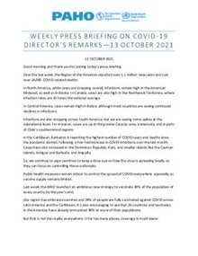 Weekly Press Briefing on COVID-19: Director's Opening Remarks, October 13, 2021