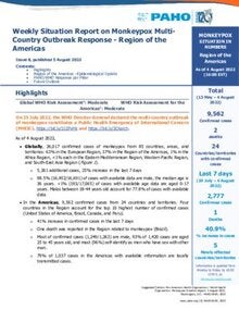 Globally, 26,017 confirmed cases of monkeypox from 85 countries, areas, and territories: 63% in the European Region, 37% in the Region of the Americas, 1% in the Africa Region, <1% each in the Eastern Mediterranean Region, Western Pacific Region, and South-East Asia Region (Figure 1).