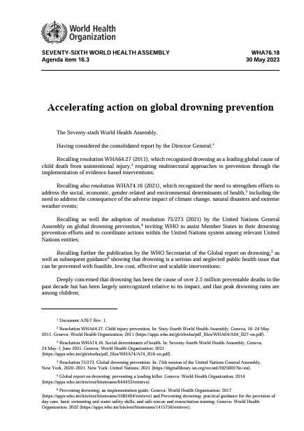 WHA76.18 Resolution - Accelerating Action on Global Drowning Prevention
