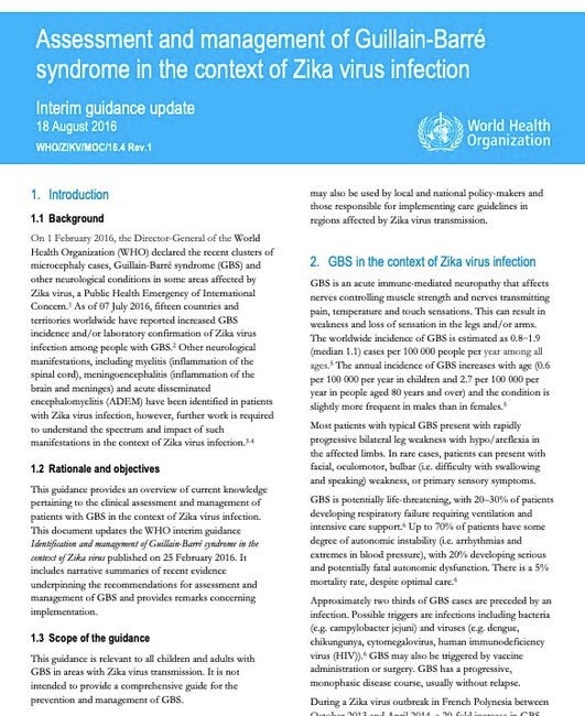 WHO: Identification and management of Guillain-Barré syndrome in the context of Zika virus Interim guidance; 2016