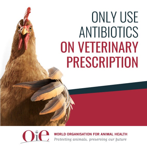 World Antibiotic Awareness Week 2018: OIE - Postcard for social media. "Only use antibiotics on veterinary prescription"