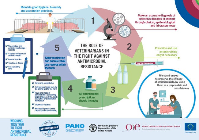 World Antimicrobial Awareness Week 2020: Infographic PDF print horizontal "The role of veterinarians in the fight against antimicrobial resistance"