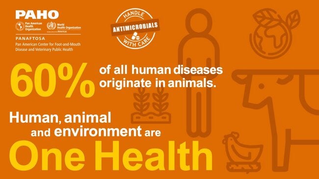 World Antimicrobial Awareness Week 2020: Postcard One Health "60% of all human diseases originate in animals"