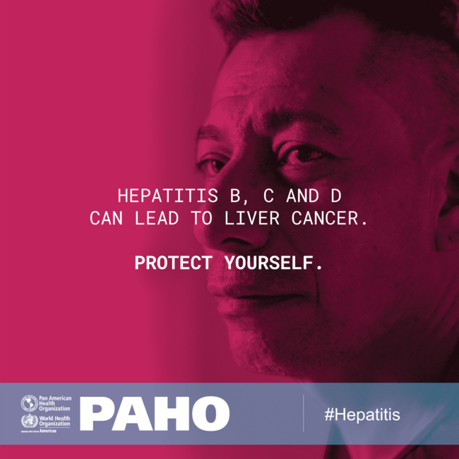World Hepatitis Day 2019: Postcard for social media "Hepatitis B, C and D can lead to liver cancer. Protect yourself"
