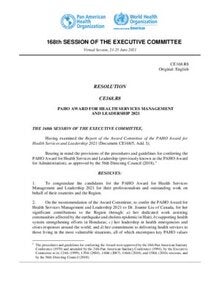 CE168.R8 - PAHO Award for Health Services Management and Leadership 2021