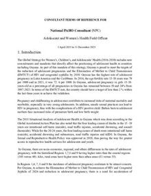National PAHO Consultant: Adolescent and Women’s Health Field Officer