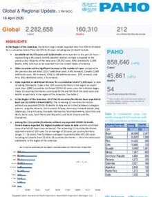 Epidemiological Update: Coronavirus Disease (COVID-19) - 20 April 2020