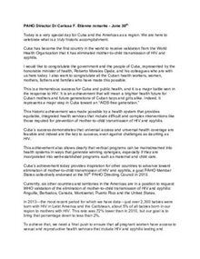PAHO Director Dr. Carissa F. Etienne's remarks: Celebrating Cuba on the elimination of mother-to-child transmission of HIV and syphilis - 30 June 215