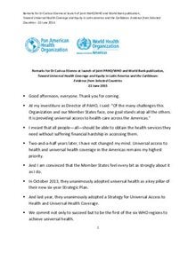 Remarks for Dr Carissa Etienne at launch of joint PAHO/WHO and World Bank publication "Toward Universal Health Coverage and Equity in Latin America and the Caribbean: Evidence from Selected Countries", 22 June 2015