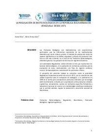 La Regulación de Biotecnológicos en la República Bolivariana de Venezuela desde 1971