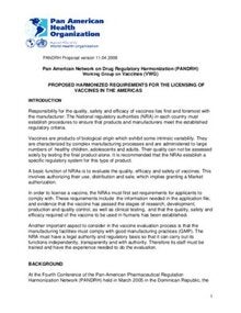 Proposed Harmonized Requirements for the Licensing of Vaccines in the Americas