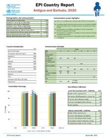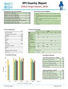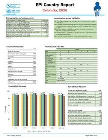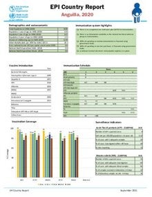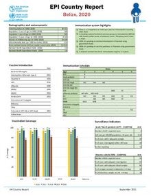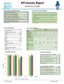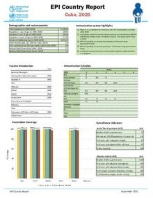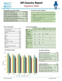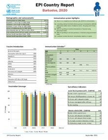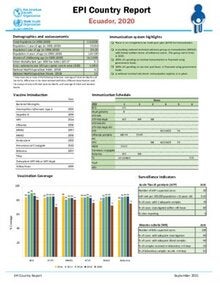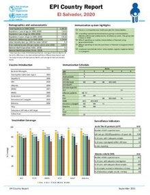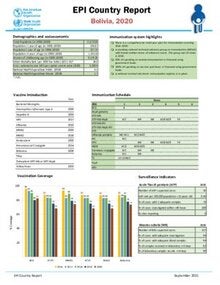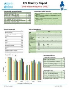 The Expanded Program on Immunization (EPI) country profiles present an overview of the situation in the immunization program of the countries in the region. It includes basic indicators (on selected EPI vaccine preventable diseases), such as, vaccine introduction, immunization schedule, vaccination coverage, surveillance indicators, vaccine stockout and other indicators from the previous year. Most of the data collected in this publication are submitted by the member countries through the PAHO-WHO/UNICEF electronic Joint Reporting Form (eJRF) and the Integrated Surveillance Information System.