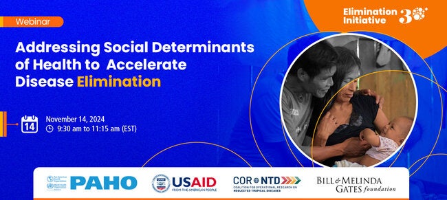 Social determinants of health are essential in accelerating the elimination of communicable diseases. In 2019, PAHO’s Directing Council approved a sustainable framework aimed at eliminating over 30 communicable diseases and related conditions by 2030. This initiative strengthens countries' capacities to eliminate diseases through four key pillars: integrating health services, reinforcing information and surveillance systems, addressing social and environmental determinants, and improving governance and finance systems. This webinar will explore tools and approaches to incorporate social determinants into programmatic actions to address health equity and increase effectiveness of activities, drawing from regional experiences and innovative frameworks.