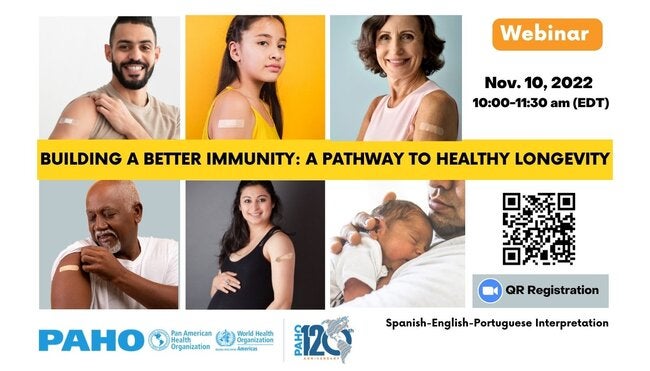 PAHO carried out the webinar "Building Better Immunity: A Path to Healthy Longevity." The panelists discussed the implications for the present and future of the life course approach in the fields of medicine and public health, as well as to better understand the existing applications of this approach to immunization programs in the region and the world.