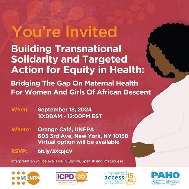 Join the Universal Access Project at the United Nations Foundation; the United Nations Population Fund (UNFPA); and the Pan American Health Organization (PAHO) on September 18 in New York City or online for a discussion on the sidelines of the UN General Assembly on bridging the gap on maternal health for women and girls of African descent, including the launch of a new coalition on building transnational solidarity and targeted action for equity in health.