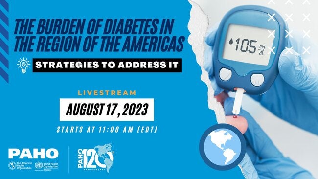 To provide evidence on the impact of diabetes on people's health and review the available strategies to deal with it, PAHO is organizing a virtual seminar for Thursday, August 17, 2023, from 11:00 a.m. to 1:00 p.m. to 12:30 p.m. (EDT). During this event, the country profiles of the burden of diabetes and diabetic kidney disease developed by the Department of Noncommunicable Diseases and Mental Health (NMH) of PAHO will be launched.