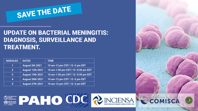 This course of 5 modules to take place during the month of August 2021 aims to contribute to strengthening the surveillance of meningococcal disease, more specifically, timely clinical and laboratory diagnosis to optimize comprehensive care for patients with meningococcal disease and guide public health measures in Latin America and the Caribbean.